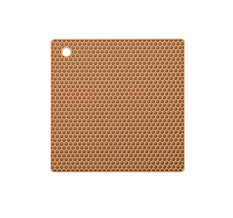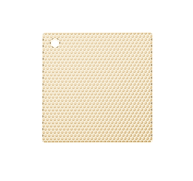 زیر دیگی سیلیکونی کندو با طراحی چهارگوش و سطحی پوشیده از حفره‌های شش‌ضلعی شبیه کندوی عسل، ترکیبی از زیبایی و کارایی را به آشپزخانه شما می‌آورد. این ساختار ویژه باعث توزیع بهتر گرما، تهویه مناسب و مقاومت بالاتر در برابر حرارت می‌شود.